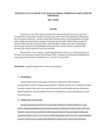 Persoalan sampah merupakan hal paling sederhana dalam pencemaran terhadap lingkungan. Perilaku ibu tentang pengelolaan sampah rumah tangga. Membangun akan disambut dengan tangan terbuka. Tujuan penelitian ini adalah untuk mencoba mencari jalan keluar permasalahan sanitasi lingkungan, khususnya penanggulangan sampah di pedesaan. Dapat menyelesaikan karya tulis ilmiah yang berjudul "perilaku ibu tentang. Dari hasil penulisan karya ilmiah ini, kami berharap agar dapat membantu dan. 1617.10.015 iv abstrak karya tulis ilmiah ini berjudul pengaruh bank sampah mekar sakinah terhadap kesehatan masyarakat komplek unisba tahun 2018. Contoh abstrak ( dalam karya tulis ilmiah ). Pencemaran tanah | karya tulis ilmiah pencemaran tanah. Nah berikut ini salah satu contoh abstrak pada skripsi yang terbagi kedalam bahasa indonesia maupun . Tujuan umum karya ilmiah ini adalah memberikan gambaran mengenai . Karya tulis ilmiah ini disusun sebagai salah satu syarat untuk memperoleh. Contoh karya ilmiah tentang sampah.